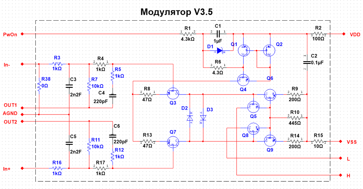 Прошло время, послушали, покрутили, есть у усилителя как минусы, так и плюсы в итоге родилась следующая версия которая пока проходит отладку на макетной плате, в свою очередь схема UCD V1.0 далее может быть выложена в полный открытый доступ, так будет со всеми моими устройствами, как одно устройство сменит следующие, то пред идущие будет выложено в полном объёме. Надеюсь моя политика всем понравиться. Чтобы проектов было больше, можете поддержать меня как комплектующими, схемами так финансово, все вопросы и поддержка по адресу rw4pir@yandex.ru, а также можете прислать свои устройства для замеров характеристик, мощности и тп (Для вас это будет бесплатно, только пересылку придётся оплатить самостоятельно в 2 конца). На схеме и в проекте использовались ближайшие аналоги РОССИЙСКИХ транзисторов, так как в живом виде установлены Российские и Белорусские транзисторы кроме оконечного каскада, ключи в выходном каскаде пока имеют тайну, как только найду лучше, выложу маркировку и производителя.