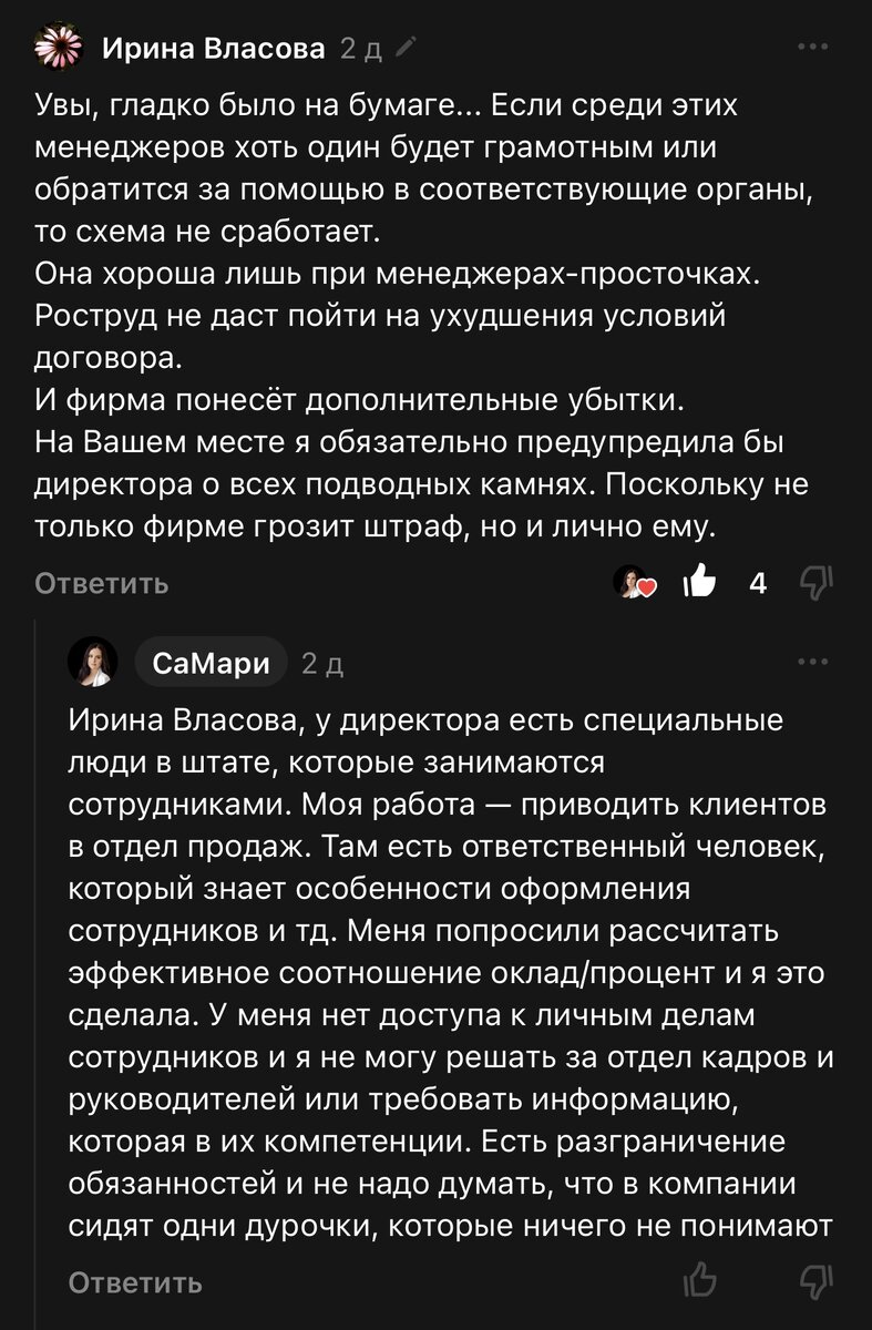Комментарии в статье про ленивый отдел продаж настойчивость одного комментатора натолкнула меня на гениальную мысль: «Как хорошо, что я отучилась навязывать свое мнение руководству!» Помните, мы перед Новым Годом обсуждали, почему полстраны работает сверхурочно, бесплатно или почти бесплатно. Тогда пришли к выводу, что выбора нет. А что если копнуть глубже? Я думаю, добрая часть перерабатывающих просто не умеют держать свой язык за зубами и ради дешевого самоутверждения лезут с предложениями, инициативами, которые потом отрабатывают. Не все! Но давайте признаемся, что в каждом есть этот червячок, который говорит: «ну давай, выдай сейчас, что все проблемы от…, потому что Петров…, а надо было …! Давай же, скажи! Скажи и пусть все видят какой ты суперспец!». И ты выдаешь руководству тиражу в стиле «я же говорила» ради секундной славы. Расплата за эту славу — «Молодец, Иванова! Вот ты это и исправишь». А кто тут молодец Есть старая еврейская мудрость: «Не хочешь, чтобы к тебе сели на