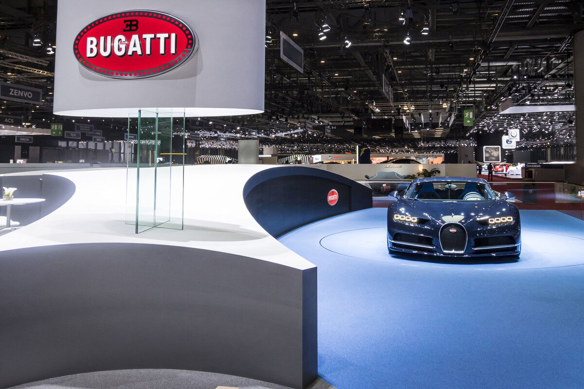 Сегодня на стенде компании Bugatti мы представляем самый дорогой автомобиль в мире. Один из интересных автомобилей, которые мы покажем, - это классная машина Bugatti Chiron Sport. Еще одной прекрасной моделью является Bugatti Divo. Особый интерес вызывает Bugatti La Voiture Noire - уникальный экземпляр, выпущенный в честь 110-летия марки Bugatti. Этот черный автомобиль имеет индивидуальный задний дизайн и 66 патрубков в выхлопной системе. Его 16-цилиндровый двигатель объемом 8 литров развивает мощность в 1500 лошадиных сил. Разгон до 100 км/ч занимает около 2,5 секунд, а максимальная скорость ограничена на уровне 420 км/ч. К сожалению, мы не можем показать интерьер этой машины, так как он оформлен по желанию владельца и не предназначен для публичного просмотра. Однако можно предположить, что внутренняя отделка выполнена из очень дорогих материалов. Что касается стоимости, в 2019 году цена Bugatti La Voiture Noire без учета налогов составляла около 11 миллионов евро. С учетом налогов в