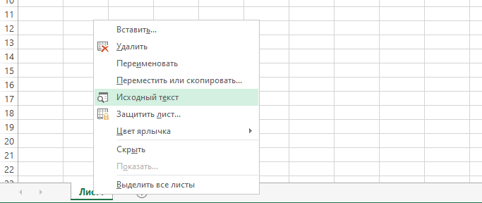 Всем привет! Сегодня я расскажу про то, как сделать так, чтобы столбцы в Excel увеличивались в соответствии с написанным текстом, не двигая ползунок вручную. Мало кому известно, что в Excel как, например, в 1С в режиме разработчика, можно писать программный код. Для этого нажимаем правой кнопкой мыши на "Лист 1" и в появившемся окне выбираем "Исходный текст" (в каких-то версиях может быть написано "Посмотреть код", поэтому ориентируйтесь на значок слева).