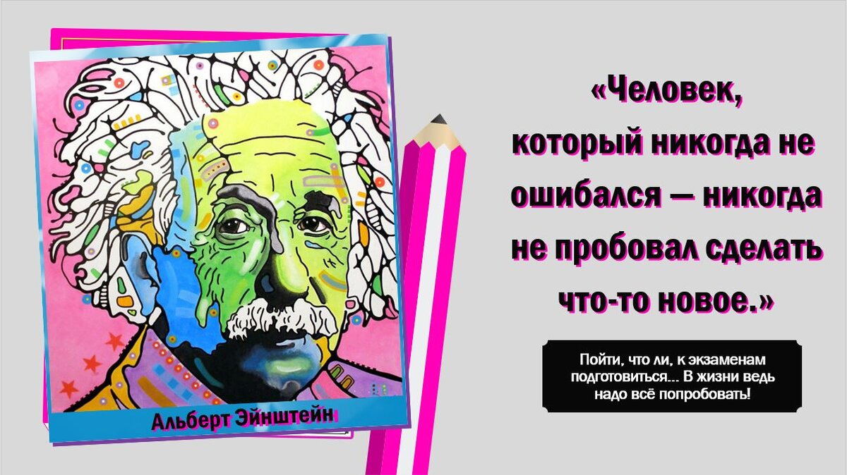 "Человек, который никогда не ошибался - никогда не пробовал сделать что-то новое." Альберт Эйнштейн