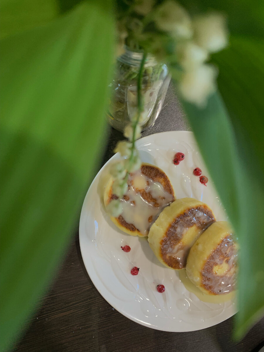 Готовые сырники украшаю ягодами и подаю со сгущенным молоком. Безумного вкусно и почему я не пробовала готовить их раньше не понимаю!