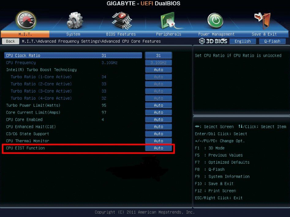 Какое предназначение функции CPU EIST в BIOS и как она работает?