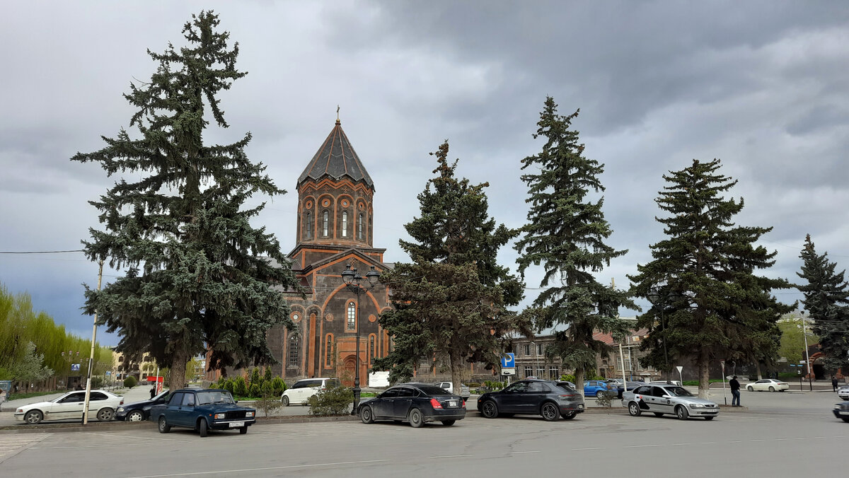 На самом деле, церквей, возможно, и больше, но эти считаются основными, и все довольно старые. Да, покажу фотографии я только четырех, потом объясню почему. Начну я с церквей, которые находятся на центральной площади города, которая называется Вардананц, в память о сражении армянского войска во главе с Варданом Мамиконяном с персидской армией. Первая, которую я поставила в начале статьи, церковь Святого Спасителя. Эта церковь была почти полностью разрушено во время Спитакского землетрясения 1988 года. Сейчас церковь находится в процессе восстановления, а построена была во второй половине XIX века. В здании церкви тоже выставлены на больших плакатах фотографии разрушенного храма. Вторая церковь находится на этой же площади, но в северной части. Это Храм Святой Богородицы. Он также был построен во второй половине XIX века. Что удивительно, он почти не пострадал от землетрясения. Видимо, изначально конструкция была такой, что весь удар на себя приняли купола, да, они обрушились, но само