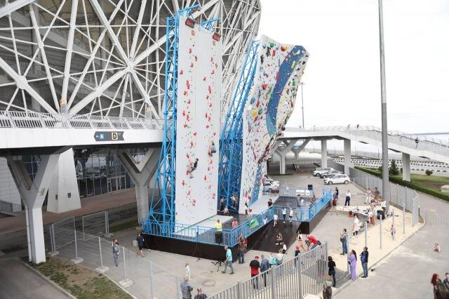 Сегодня в Волгограде открылся первый комплекс скалодромов. Об этом сообщили РИАЦ в пресс-службе администрации области. Стенды предназначены для спортивного скалолазания, на них могут проводиться всероссийские соревнования. Спортснаряды уже опробовали волгоградские любители этого увлекательного вида спорта. Комплекс состоит из модулей, они могут работать каждый по отдельности, а также в соединении. Модуль «Трудность» (дисциплина «Лазание на трудность») высотой в 15,7 м., шириной — 8,8 м., площадь рабочей поверхности — 160 кв. м. Модуль «Скорость. Рекордный формат» (дисциплина «Лазание на скорость») высотой 15,5 м., шириной 6 м.; дополнительно он оснащён автоматическими страховками Perfect Descent Speed Drive и сверхточным хронометражем. На комплексе могут одновременно соревноваться до 150 человек.