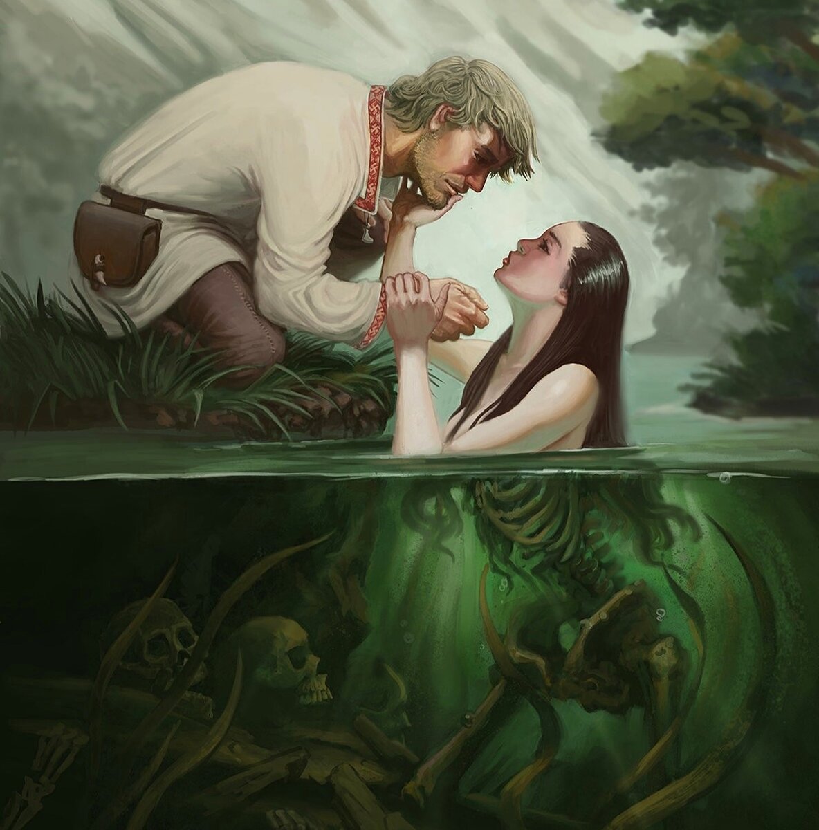 - Отдай гребень мой, парень! Это тебе он из рыбьего хребта кажется, а ты посмотри, какие жемчуга на нём роса оставила – словно слёзы. Отдай. Не хочешь? Всё желаешь забрать? А ведь бери, пожалуй! Что, смеха моего испугался? Посмотри на меня парень! А? Хороша ли? Посмотри на руки мои белые! Хочешь почувствовать, как нежны, умелы они? Иди сюда! Разве это руки утопленницы? Посмотри на мои перси! Не червями изъеденные, в тине – нет, манящие, теплые. Что, холодны? А ты согрей! Согрей меня, парень! Да не бойся, ступай за мной. В мураве высокой уложу, росой напою, лунным светом залью, заворожу, закружу, заласкаю. И не поймёшь – луговые травы ли нежат, косы ли мои. Губы ласковые манят, так целуй! Согрей! Смотри, как бьюсь под тобой! Ах…! И вспомни, заворожённый, вспомни, луной поцелованный, как рвал эти косы, как бил по губам, как терзал тело моё белое, как вырвал честь мою. Целуй, парень! Владей! Иди за мной! На глубину иди! Автор: Анжелика-Анна Источник: https://litbes.com/concourse/shorts-7