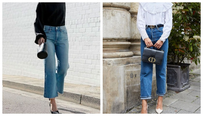 Если вы стоите перед выбором правильной модели джинсов, прямо сейчас стилисты покажут на конкретных примерах, какие модели подходят абсолютно всем. Укороченные джинсы прямого кроя с высокой посадкой, классического синего цвета, помогут визуально уменьшить объемы вашего тела, что сделает талию стройной и изящной, а бедра более привлекательными. Подвернутые джинсы трубы выглядят выигрышно на любой женской фигуре. Они визуально удлиняют рост, делают талию тонкой, а ноги стройными. Данную модель стилисты советуют носить с заправленным верхом, таким образом, вам удастся еще больше удлинить ножки. В качестве обуви к этим джинсам подойдут, как туфли-лодочки, так и громоздкие балетки. Тренд 2023 года — это джинсы прямого фасона с необработанным краем. Стилисты утверждают, что с данной моделью джинсов можно составить огромное количество необычных образов, как на каждый день, так и для особых случаев. Обратите внимание, как стильно и эффектно джинсы с необработанным краем перекликаются с классич