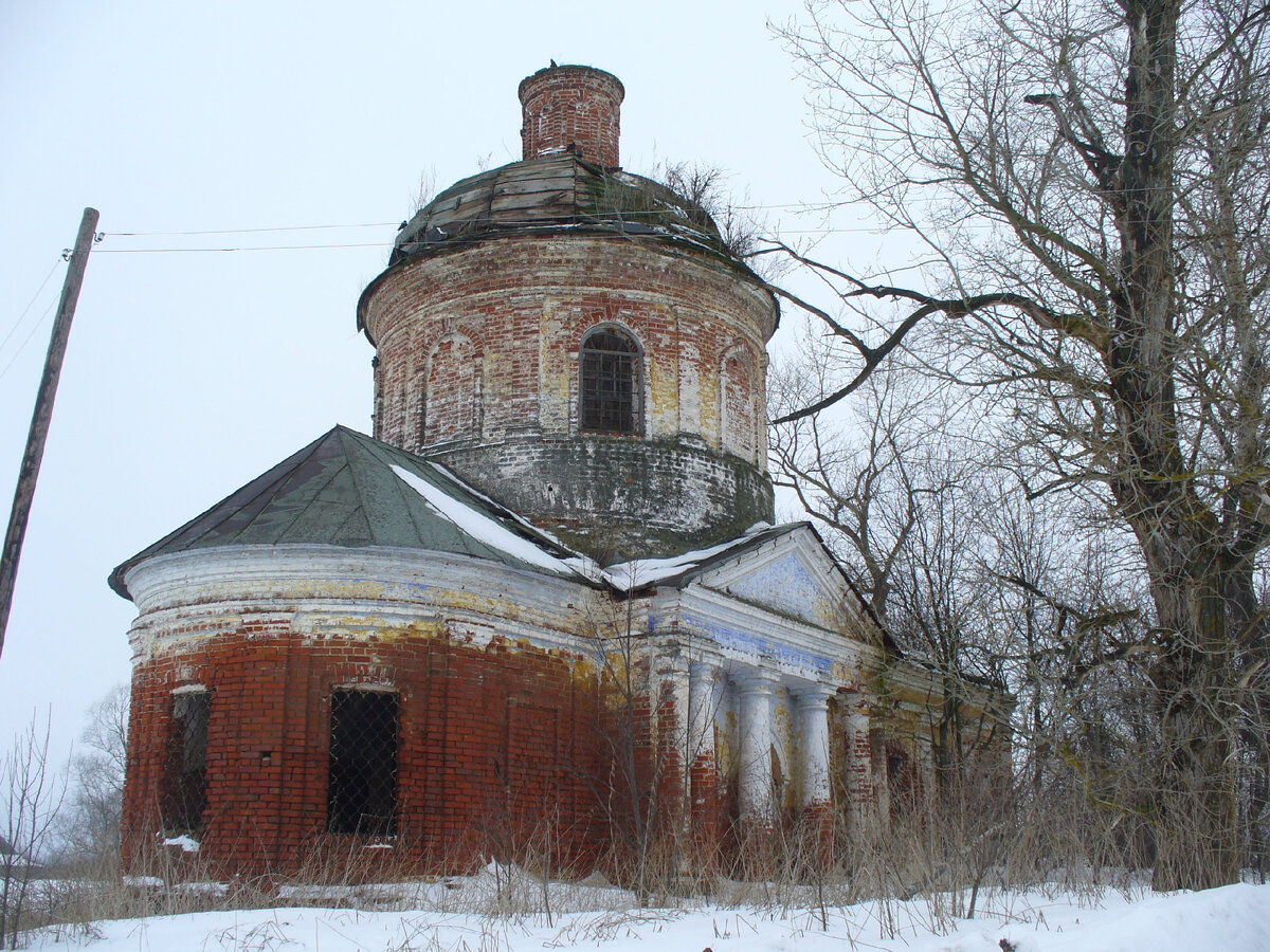 Всем привет! Сегодня решил показать Вам обычный сельский храм. Он стоит в селе Пирогово. К сожалению, как и многие храмы, он сильно пострадал в советские годы. Но интересно другое: его фасады сохранили цветные элементы белого, синего, желтого цветов! Но обо всем по порядку.