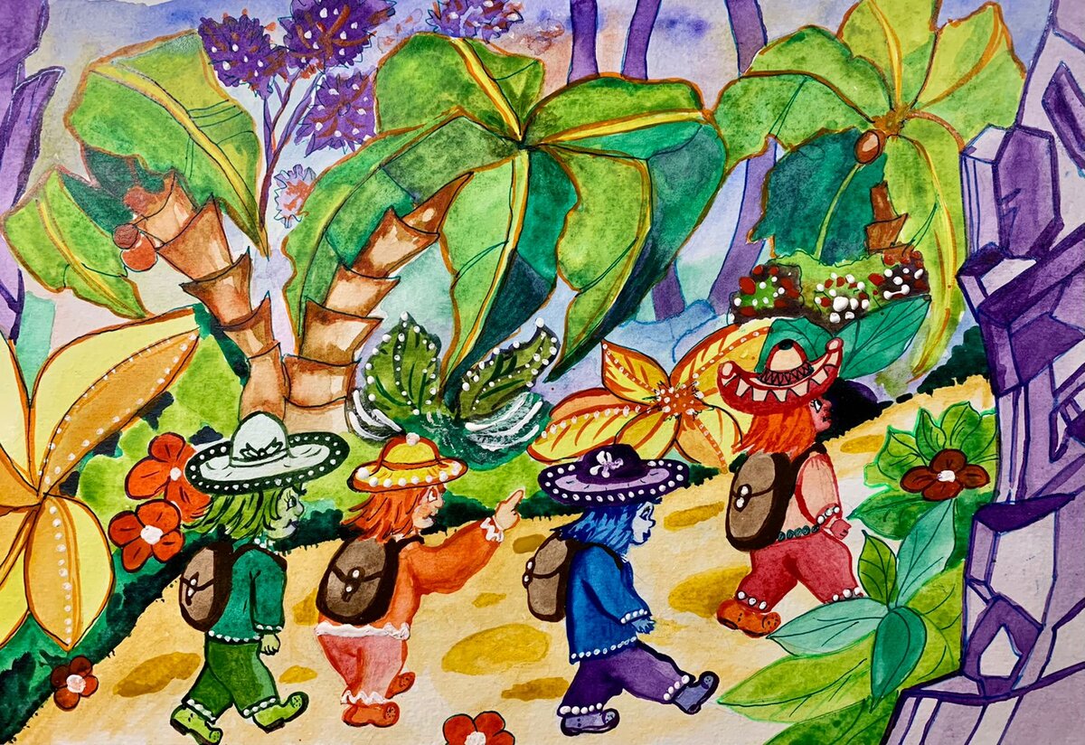 Начало, 2, 3, 4, 5, 6 7 Тем временем радужные человечки собрались в дорогу. Получился целый разноцветный отряд. Впереди шли красные человечки – ну а как иначе! Они показывали дорогу остальным, а заодно поучали их, как вести себя в пути, что делать, если повстречается незнакомое чудище, как ставить палатку, как разводить костёр – они знали всё на свете и спешили поделиться этим с остальными. Остальные шагали следом. Но невесёлое это было шествие. Хоть оранжевые человечки и старались подбодрить всех остальных, им не хотелось даже передвигаться кувырком, как они обычно это делают. Невесело было и жёлтым малышам. Голубые человечки тоже грустили, а зелёные так вообще просто рыдали в голос, распугивая птичек, которые присаживались на ветки деревьев, чтобы посмотреть на необычную процессию, появившуюся в их лесу. Солнце клонилось к закату, подступала ночь, синие человечки предложили разбить лагерь, чтобы наконец-то поспать, не передвигаться же им в ночи по незнакомому лесу! - Эх вы, сони, – с