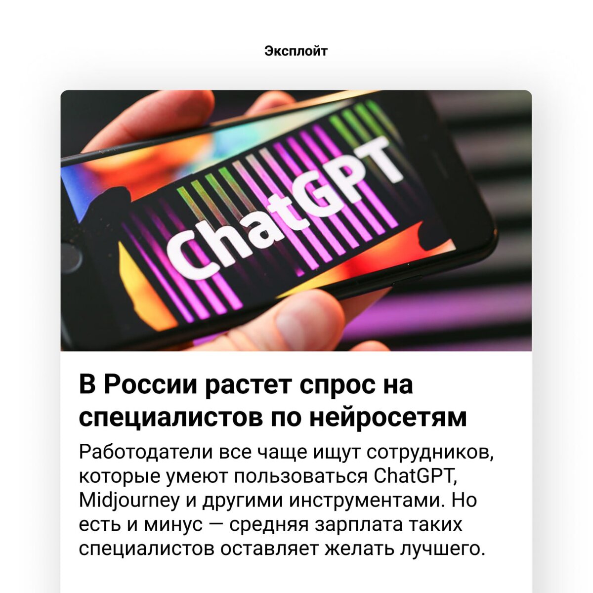 Вы не зря учитесь пользоваться нейросетями: в России растет спрос на специалистов по ChatGPT, Midjourney и других инструментов. Только в феврале на hh.ru было опубликовано 506 подобных объявлений, но есть и грустный момент — средняя предлагаемая зарплата составляет всего 30 тыс. рублей. Поэтому на текущий момент более выгодно зарабатывать на создании фотографий как фрилансер. Договариваешься напрямую с несколькими блогерами. Ежемесячно предоставляешь им нужное количество фотографий в тех образах, в которых они запросили и зарабатываешь гораздо больше. Вот тут инструкция как быстро освоить навык создания фото с помощью нейросетей: https://t.me/neuroilustrator_bot?start=neurophoto