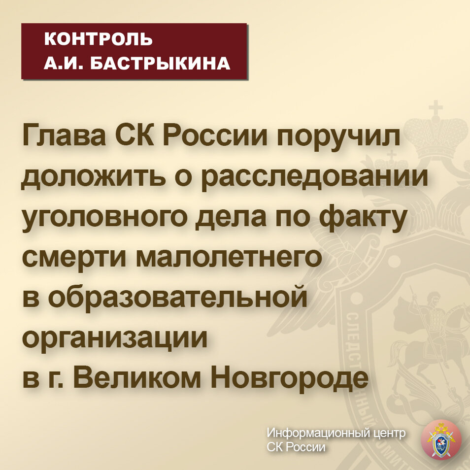 Глава СК России поручил доложить о расследовании уголовного дела по факту смерти малолетнего в образовательной организации в г. Великом Новгороде