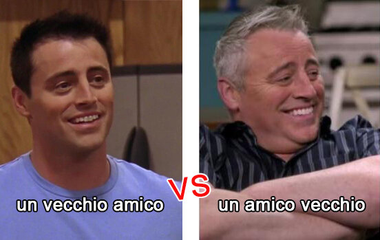 Un vecchio amico - старый друг в значении "друг, с которым мы дружим очень давно". Un amico vecchio - "мой друг - старый человек".