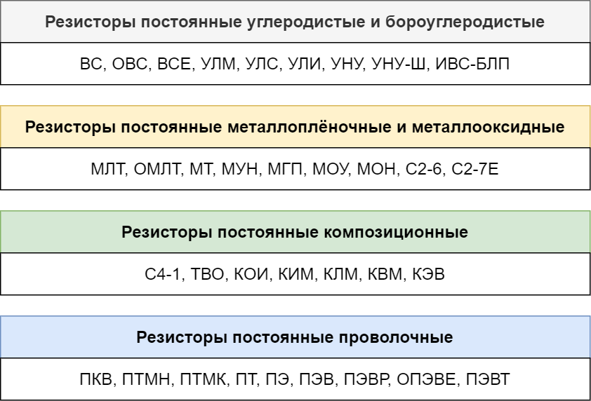 Я буду говорить о видах резисторов, исходя из советских стандартов и обозначений. Если понадобится найти импортный аналог, то вам придётся сделать это самостоятельно (возможно, в будущем я об этом напишу отдельно).