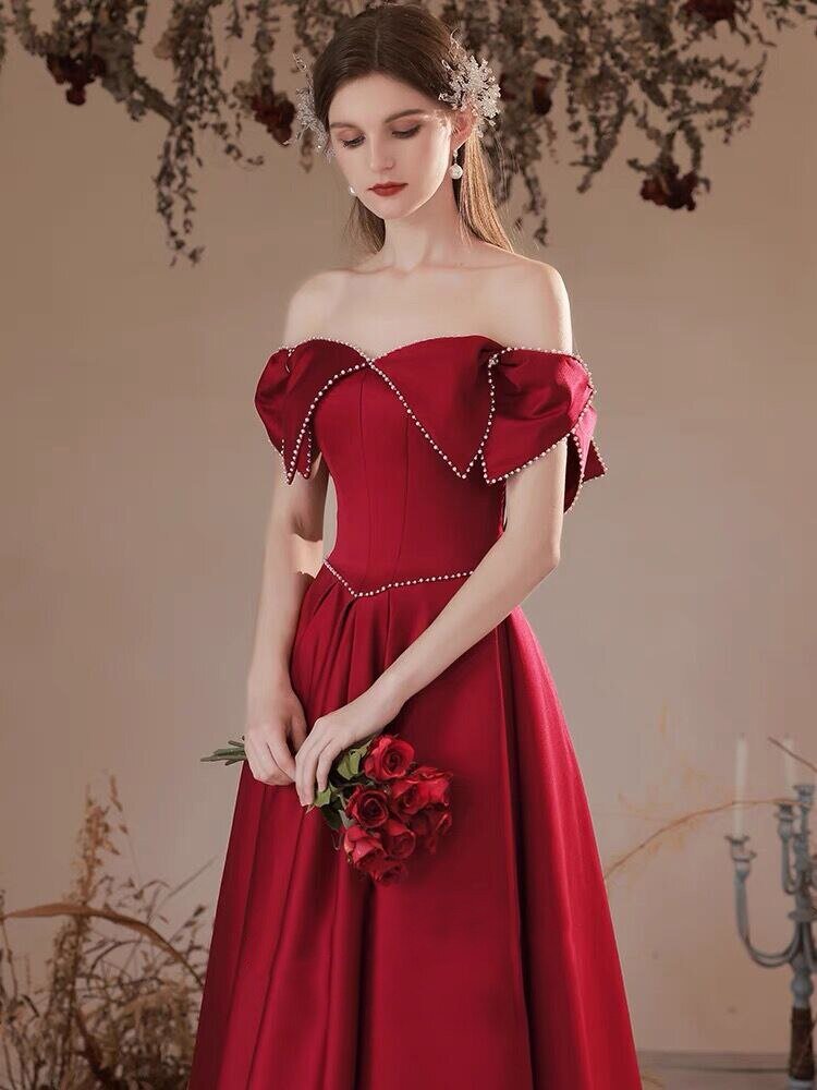https://clck.ru/34QYSy Бордовое атласное платье знаменитости, длинное платье-трапеция с вырезом лодочкой и открытыми плечами, элегантное официальное вечернее платье на шнуровке для гостей, выпускного вечера, Новинка
