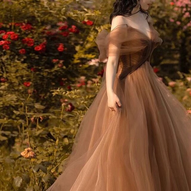 Пикантные коричневые платья для выпускного вечера, плиссированный трапециевидный тюлевый корсет с открытыми плечами, вечерние платья до пола в стиле знаменитостей для коктейльной вечеринки