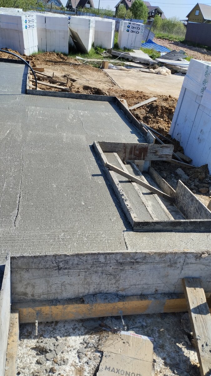 С. Пешково г-о Чехов 21.05.2023 г. Не выкладывал на прошедшей неделе посты, так как неделя была сложная и наполненная работой и времени совсем на посты не было, но сегодня и завтра я буду выкладывать посты с отчётом по всем объектам за неделю. На двух объектах в селе Пешково мы залили нулевые плиты и лестницы с грунта на первый этаж. Прикладываю фотоотчёт по проделанной работе