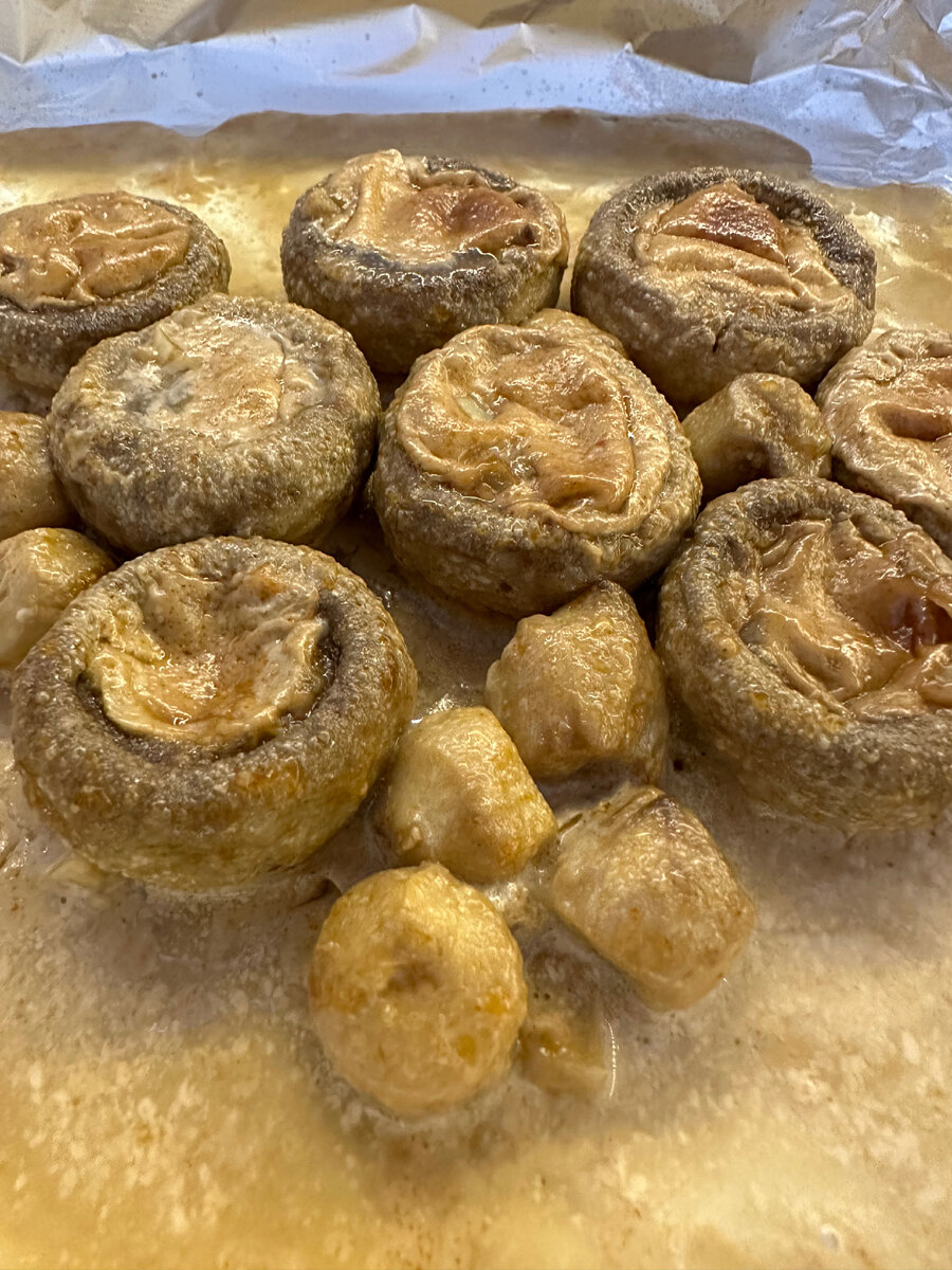 Шампиньоны получаются невероятно вкусными и сочными. Так как это мой первый опыт приготовления шампиньонов в духовке, то с полной уверенностью могу сказать, что данный рецепт получится к всех! Для приготовления данного шедевра Вам потребуется: ➡️ Шампиньоны ➡️ Майонез ➡️ Соевый соус ➡️ Чеснок ➡️ Паприка Способ приготовления маринада: Смешиваем майонез, соевый соус, мелко нарезанный чеснок и паприку. Соотношение ингредиентов зависит от Ваших вкусовых предпочтений. Для точки опоры могу предложить свой вариант на 400-500гр шампиньонов: ➡️ 3 ст.л. майонеза ➡️ 2-3 ст.л. соевого соуса ➡️ 1 зубчик чеснока ➡️ 1 ч.л. без горки паприки Способ приготовления шампиньонов: 1️⃣ Замачиваем шампиньоны в воде на 5 минут. 2️⃣ Выкладываем на бумажное полотенце. 3️⃣ Вырезаем ножки и очищаем. 4️⃣ Смешиваем с маринадом и выдерживаем 30 минут. 5️⃣ Помещаем в духовку, разогретую до 180°С на 30 минут. Если духовка слабая, то можно увеличить температуру приготовления до 200°С или продлить время приготовл
