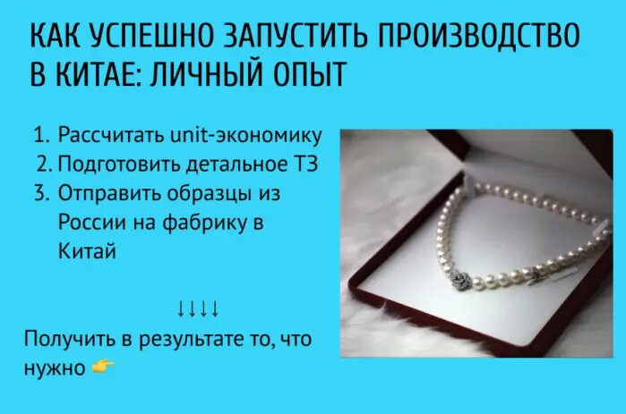 Я объяснил менеджеру, что главное — это качество, так как товар премиальный. Специалист нашел подходящую фабрику, заключили с ней договор, перевели оплату за изготовление образца и доставку.