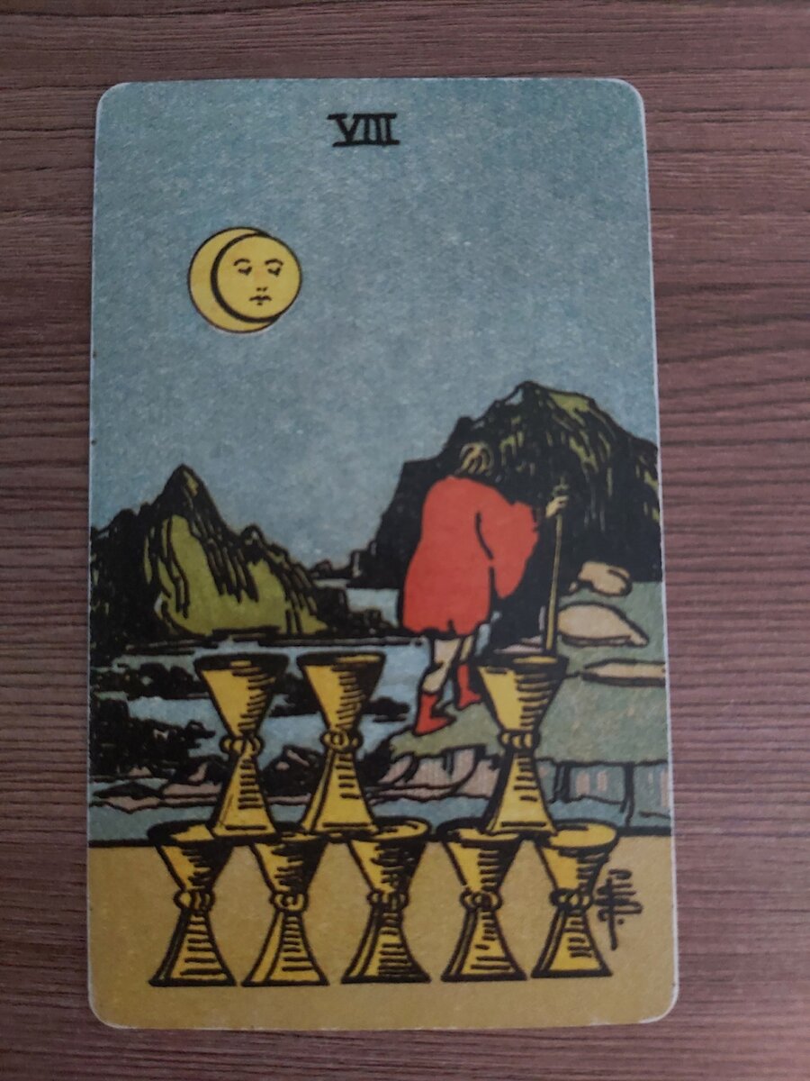 Карта учит уметь оставлять своё прошлое, благодарить его и идти дальше, искать новый путь, предварительно сделав работу над своими ошибками. Ведь дальше, это изобилие 9 чаш. Это достаток и удовольствие. Не бойтесь идти в новое!