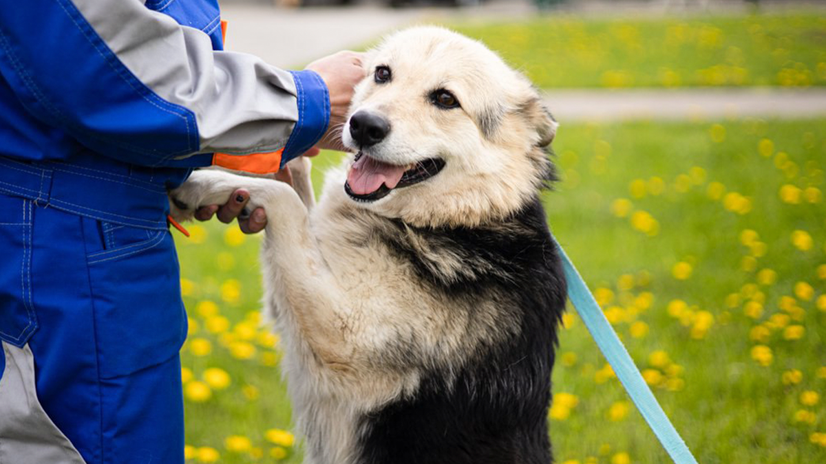 Под Москвой спасли собаку, которая запуталась в проволоке