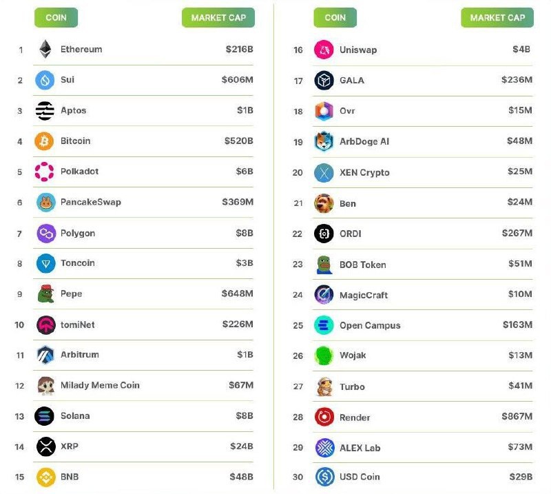 🔺ТОП-30 криптовалют по поисковым запросам на CoinGecko за прошедшую неделю👇