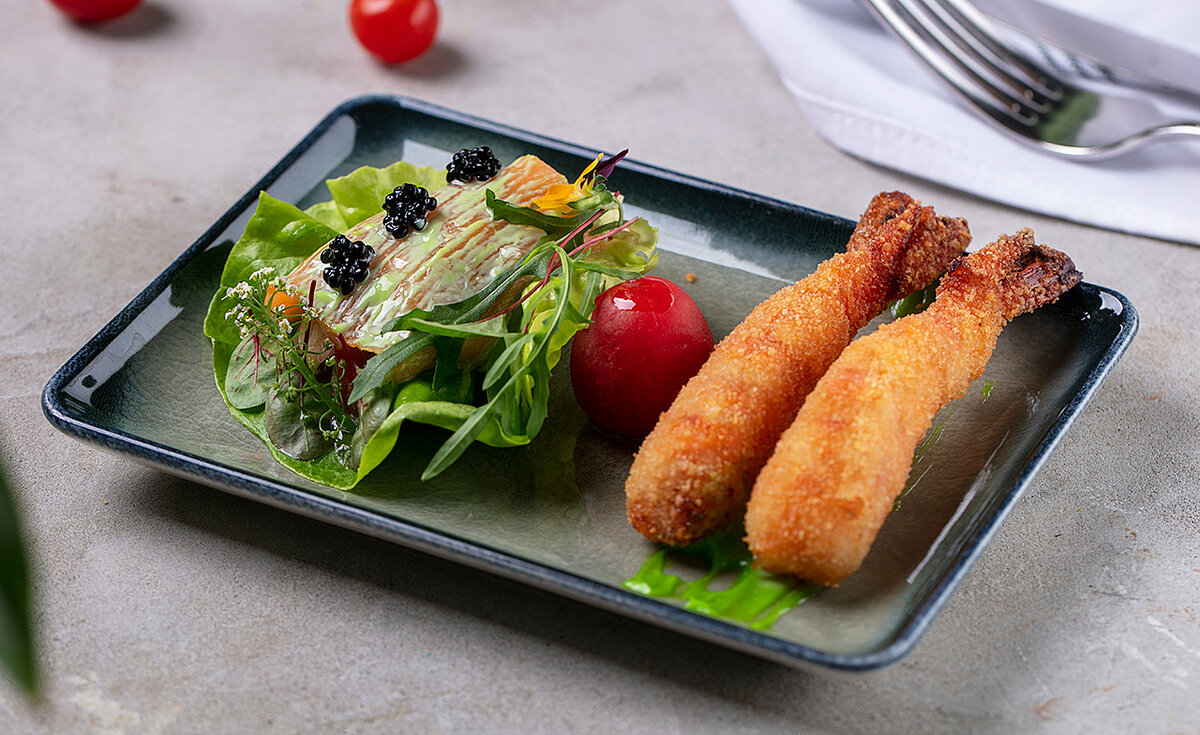 Когда хочется праздника. Закуска из креветок, салата и слабосоленого лосося