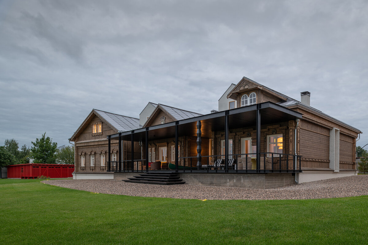 Речь о том, как архитекторы сумели создать проект загородного дома, в котором гармонично сочетаются современные детали, искусство, комфорт, удобство со старинной архитектурой, резьбой по дереву.