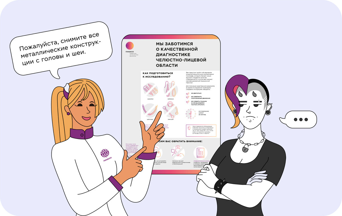 Перед выполнением лучевой диагностики лаборант обязательно попросит пациента снять все металлические конструкции. Зачем? Метод получения снимка челюстно-лицевой области заключается в сканировании головы при помощи рентгеновских лучей. Они проходят сквозь исследуемый участок и фиксируются на детекторе. На пути лучей могут возникать помехи — металлические предметы, которые влияют на качество снимка. Металл, если не снять его перед диагностикой, визуализируется яркими пятнами. Это связано с высокой плотностью вещества: рентген-лучи не могут пройти, например, сквозь золотые серьги или пирсинг. Засветы на снимке специалисты называют «артефактами». Они помешают просмотру ближайших структур: зубов, костей черепа, суставов, пазух. За засветами могут скрываться патологии, которые врач не увидит. Что
