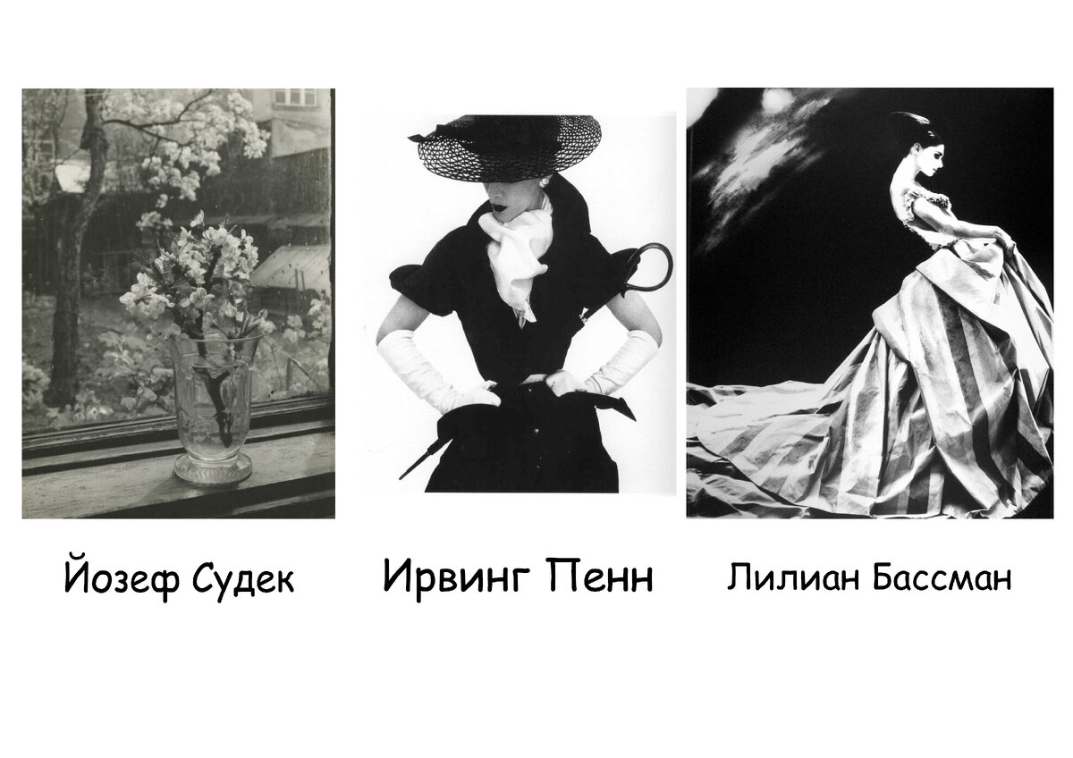 Мне хотелось бы обратить и ваше внимание на этих трех мастеров. И поговорить о их творчестве. Думаю для Вас это тоже будет в какой-то степени полезно и интересно. И так три великих мастера фотографии: Ирвинг Пенн, Йозеф Судек и Лилиан Бассман.