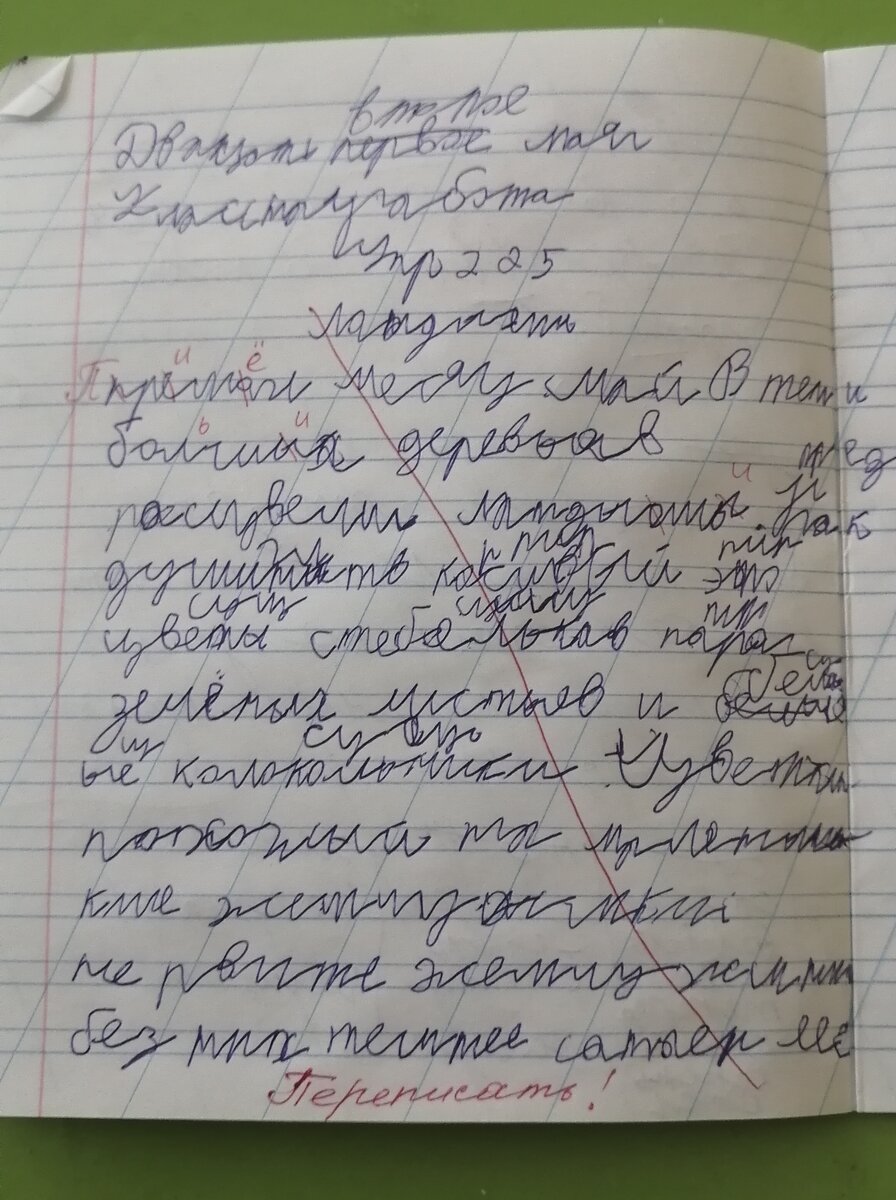 Навестила сегодня после третьего урока Женечку - вторым уроком у них был русский язык, а третьим - иностранный. Поэтому тетради по русскому были уже проверены. И, собственно, вот: