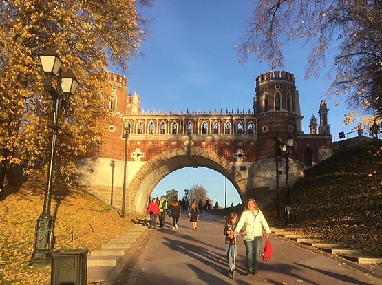 Из воспоминаний... 2018. Помните ли вы такую погоду в Москве в конце октября? Я не помню! Бывает, конечно, так называемое бабье лето... Но, как правило, оно короткое и не такое яркое. В субботу и воскресенье были на даче - встречались с друзьями, ходили в Благовещение, сгребали листья... Было аномально тепло - 18 градусов! Казалось, это не может длиться долго. Но в понедельник стало ещё теплее - плюс 20! Во вторник я решила - нельзя упускать возможности доставить себе удовольствие пошуршать осенними листьями... И отправилась в одно из самых любимых мест в Москве - в Царицыно. Рядом с этим местом прошло моё детство. Мы лазили по разрушенным стенам недостроенного Екатерининского дворца, зимой катались здесь на лыжах, спускались с высоченных горок, после выпускного вечера гуляли всем классом. И я всегда мечтала, чтобы дворец достроили... И теперь там вот так красиво: Красиво там и зимой! Красиво там и летом и весной... В Царицыно красиво всегда!