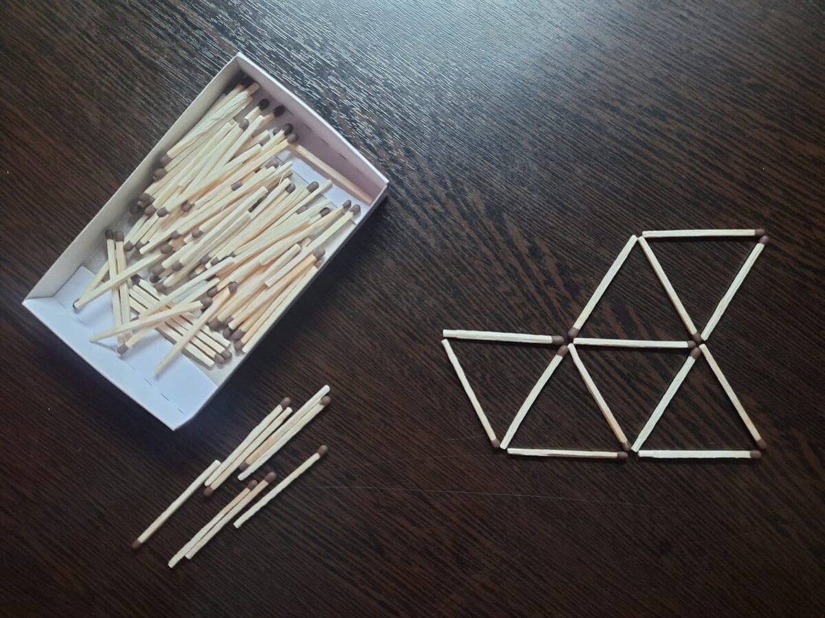 Убери 3 спички так, чтобы получилось 3 треугольника