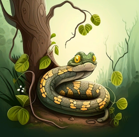 Однажды змея решила отправиться на прогулку в лес. Она ползла по тропинке, когда услышала громкий шум. Змея испугалась и решила спрятаться в кустах. Но вдруг она увидела большого медведя, который шел прямо к ней.