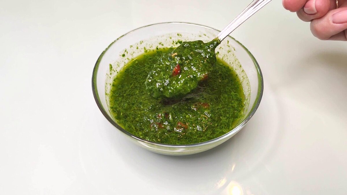 7. В завершении добавляю немного свежего перца чили. Перец блендером не измельчаю, иначе соус приобретет некрасивый цвет (если вы не любите острое, чили можете не добавлять).