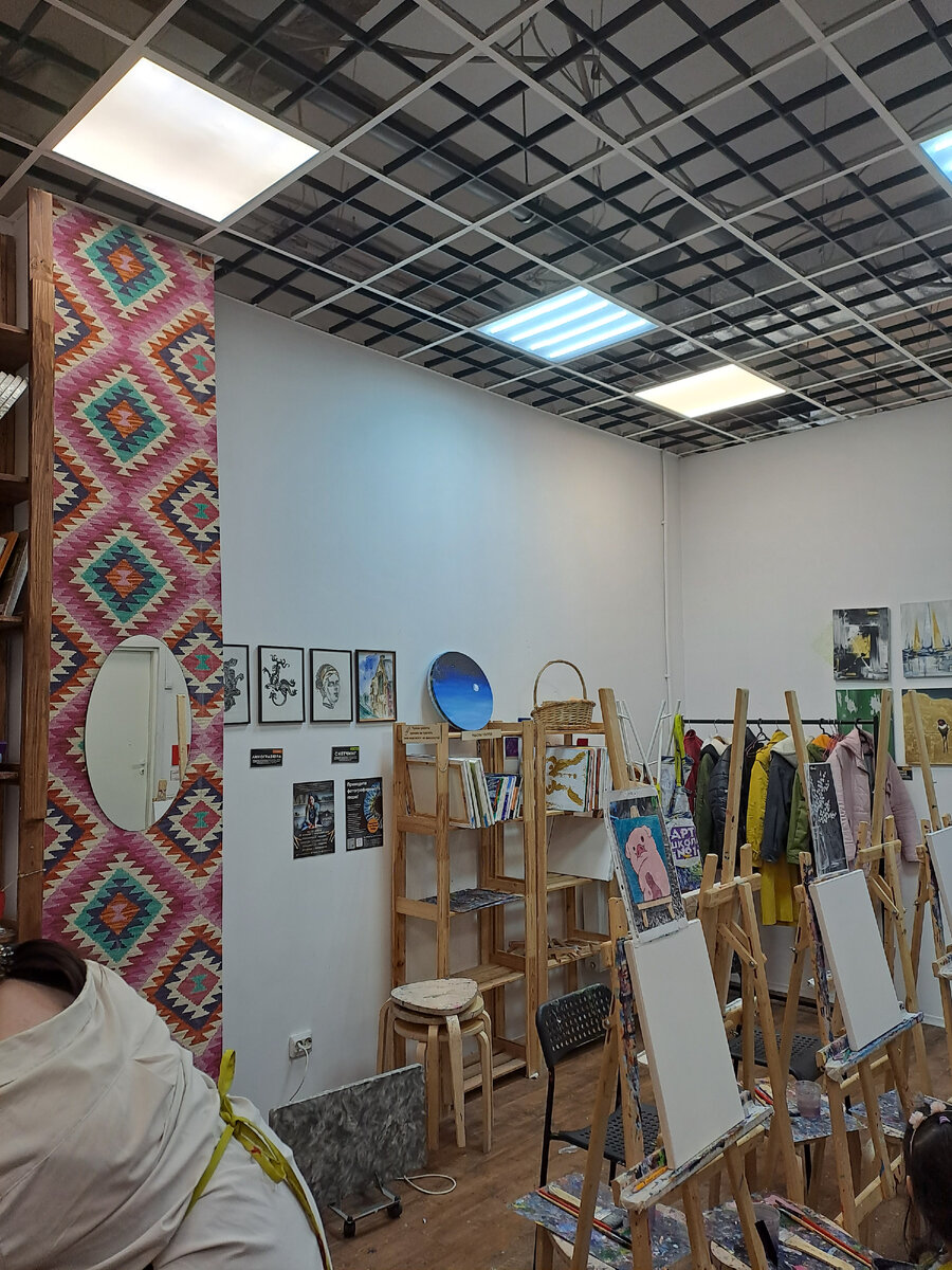 Приветствую, друзья! Недавно я писала о том, как посетила МК по скетчингу: Но на этом я не остановилась 😁 В той же школе "АРТ Школа номер 1" (СПб) записалась на второй МК - живопись маслом. Ведь я никогда не рисовала маслом... Как это вообще? Маслом 🤔 Заодно решила заценить второй адрес школы - у метро Гостиный двор. Зал меньше по размеру, ни одного окна... на Лиговском гораздо симпатичнее и уютнее! Я выбрала референс и затем на палитру набирала краски из баночек: У каждого участника свое рабочее место: Кстати в этот раз я была не одна - ещё 4 человека. Причём (и это стало для меня сюрпризом) - в группе могут оказаться люди совершенно разных возрастов 🙄 маленькие дети, подростки, взрослые.. если честно, я не сторонник таких коллабораций... Я сделала набросок карандашом: Затем фон - кистью - крупными мазками: А дальше самое интересное- введение всех цветов 😋 Я даже попробовала рисовать фон мастихином (эдакий мини шпатель 😁), но получилось не очень... и преподавателю пришлось п