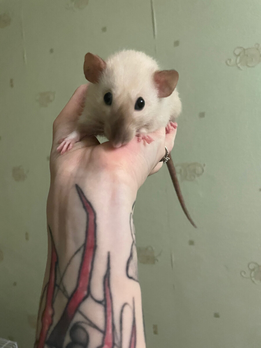На меня обиделась моя лапочка🐁 Как это случилось.. Из-за слишком сухого воздуха наши крыски сопливят. И чтобы не пичкать их антибиотиками ветеринар посоветовал нам сначала ингаляции и капли в носик. (советовать препараты не буду, т. к. считаю, что питомцам, как и нам, лучше проконсультироваться с специалистом) Пыталась попасть капелькой в носик шилопопой Бибе, которая не сидела в руках, вырывалась, и ей явно было не приятно сие действие, но лечиться надо, дабы не запускать. Пытаясь загладить вину перед ней, я ее наглаживала, целовала и разговаривала с ней. Тут пришел в комнату муж, и возможно от такой неожиданности она попыталась вырваться из моих рук, задевая коготками все что попалось под ее лапки - и это оказались мои руки🤓👍🏻 Биба спрыгнула на диван, полезла под одеяло и запуганно на меня смотрела. На ночь я обоих посадила в клетку, отгоняла от Бибы ее подружку, чтобы крыса спокойно отсиделась и поняла, что она в безопасности. На утро чуда не случилось, наша обиженная сидела в с