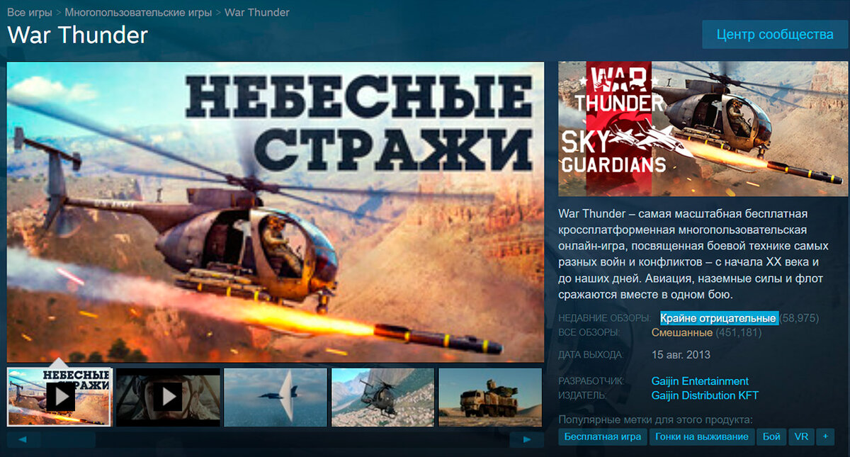 Экономическую модель условно-бесплатной игры War Thunder и до последних событий сложно было назвать лояльной. И особенно сложно по отношению к игрокам, которые не проплачивают премиум-аккаунт. Gaijin решила пересмотреть эту модель. Казалось бы, вот и справедливость подъехала, но уехала. Не вдаваясь в экономические детали, как минимум без премиум-аккаунта можно даже не пытаться. Ремонт техники стал запредельно дорогой. На вертолёте и вовсе страшно вылетать, поскольку его починка на вес золота. Даже высокоуровневым игрокам с премиум-подпиской иной раз приходится воевать на технике классом сильно ниже, чтобы хоть что-то нафармить. Праведный гнев игроков вылился в «Review Bombing» – уничтожение рейтинга игры на любых площадках. После этого Gaijin быстро откатила обновление и пообещала пересмотр экономической модели в будущем. В этой ситуации отдельно доставляют слова креативного директора студии Кирилла Юдинцева. Дескать Review Bombing – это большой ущерб для игры, он отпугивает новых игр