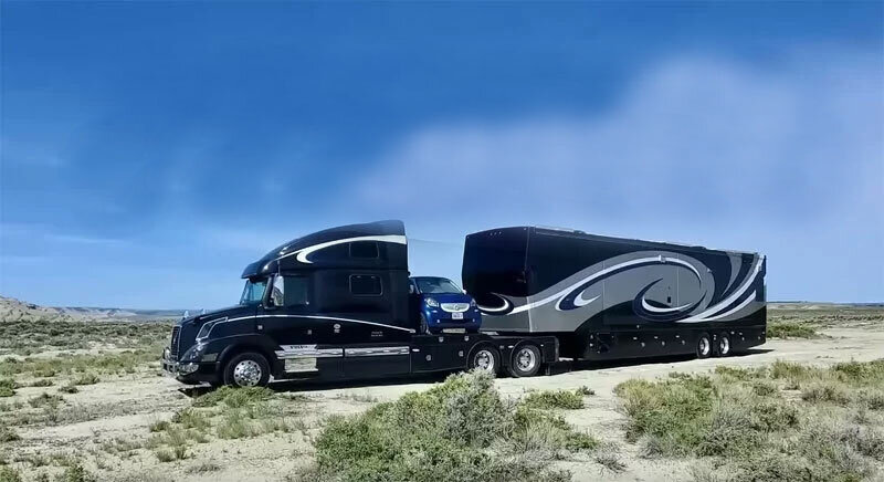 Герои нашего сегодняшнего рассказа не захотели терять в комфорте, поэтому выбрали очень роскошный автодом, представляющий собой седельный тягач Volvo с жилым двухосным полуприцепом.