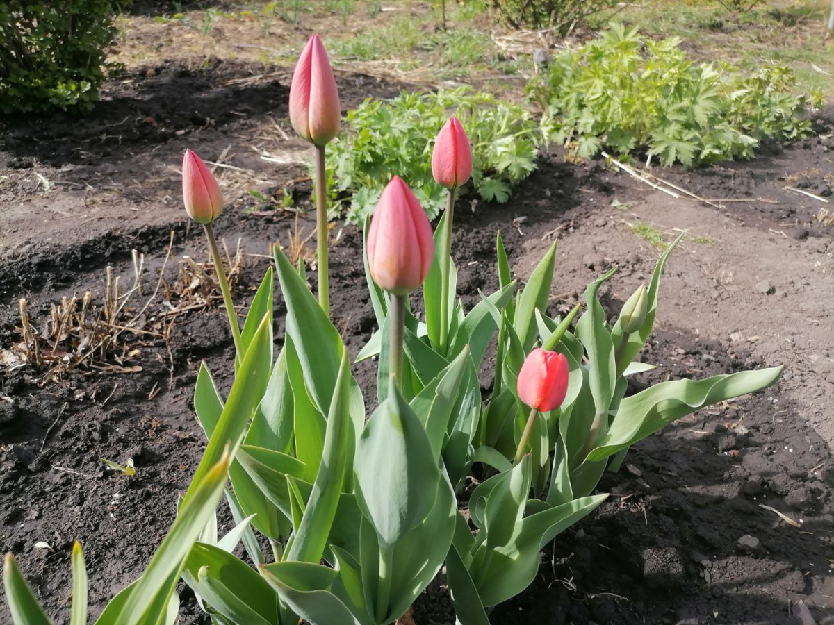 - У вас тюльпаны уже цветут?! А у нас только листочки показались.