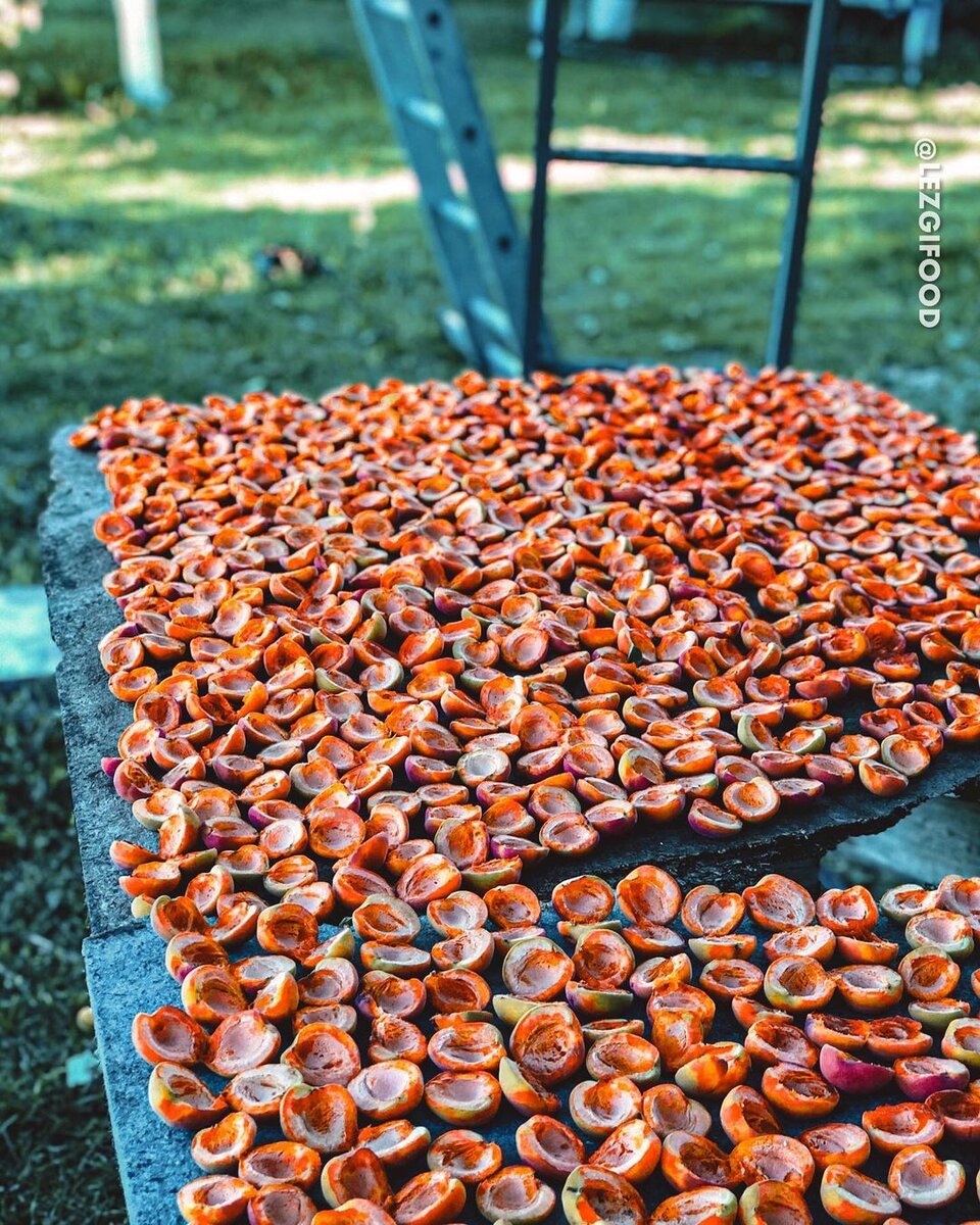 Абрикосы сушат под солнцем на плоских крышах домов — и ничем не обрабатывают. Такие абрикосы теряют «товарный вид»: становятся коричневыми, сморщенными и жесткими. Но, именно они являются самыми полезными и вкусными, безо всякой химии. Сушить этот фрукт нужно по особенной технологии. Точно так же, как это делали еще наши прабабушки в горах. Как сушить абрикосы? ⠀ Все очень просто: на чистой поверхности (широкая доска, специальные плетёнки, или на металлическом листе), одним словом - любая ровная поверхность, которую можно вынести на солнце. ⠀ ⠀ Без солнца абрикосы плохо сушатся, могут и заплесневеть. В дождь нужно накрыть клеёнкой или перенести в помещение. Для сушки надо разломать абрикос пополам, освободить от косточки и разложить рядами на поверхности, внутренней стороной вверх, чем твёрже абрикос тем красивее сохнет. ⠀ Мягкие, переспелые на солнце чернеют, но не портятся, и они слаще на вкус. ⠀ Сушёные абрикосы используют для компотов, разных напитков, для начинки к пирогам и варя