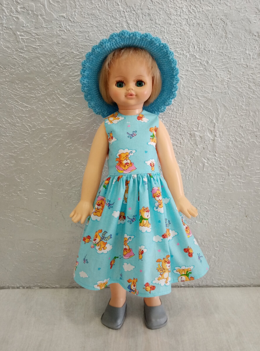 Всем любителям кукол огромный привет! Сегодня поделюсь с Вами выкройкой на Алису "Веснушку". Это последняя "Веснушка", которая у меня стояла без одежды. Теперь все девочки в платьях, стоят и озоряют мой дом своей красотой. Алисе пришлось связать шляпку, так как у Алисы отрезаны волосы "типа под карэ". Я её купила на Авито за 100р., думала, что перепрошью волосы, но времени как всегда не хватает. Платьице простенькое из хлопка. Выкройки даны без учёта припусков на швы. Рекомендованные припуски на швы от 0,5 см до 0,7 см. Стрелкой на выкройках показано направление долевой нити на ткани. Для юбки нужно выкроить полотнище ткани длинной 80 см на 21 см. У панталон по линии талии и линии низа припуски на швы делаем 1,5 см (для вздевания резинки). Благодарю Вас за внимание💐