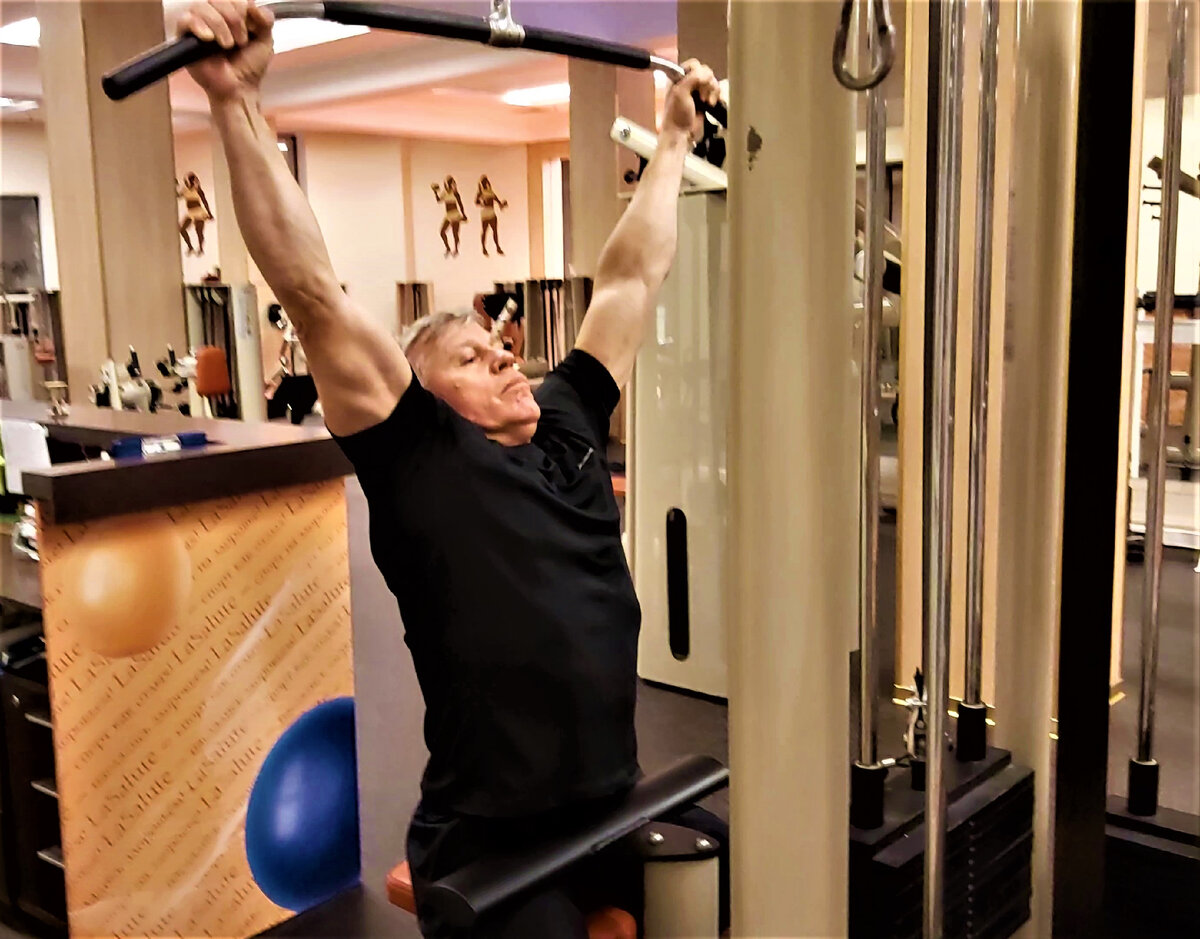 Об этом сегодня спросил меня мой знакомый на тренировке. Здесь всё просто! Я рассказал ему, как я в свои 63,5 лет работаю над этим. Думаю, что это мне удаётся. И так, тренируюсь 4 раза в неделю. Это понедельник - вторник, среда - отдых. Затем тренировки четверг - пятница. Суббота и воскресенье отдых от тренировок. В начале тренировки 15 минут кардио. Хожу на беговой дорожке, поэтапно увеличивая скорость ходьбы. На бег не перехожу. Сейчас я работаю на увеличение мышечной массы. После кардио очень тчательная разминка. Где-то минут десять. Разминаю все тело от шеи и до ног. Сама силовая тренировка длится час. Порой до час двадцать минут. Например, сегодня качал следующие мышцы: грудь, плечи, трицепс. На каждую мышцу по два упражнения. В каждом упражнении 4 подхода по 10 - 12 повторений. Вес снарядов увеличиваю в каждом подходе. В последнем подходе может быть и меньше повторений, например 8. Не беда! Ведь приучаю организм к новым нагрузкам, определяю свой потенциал на данный момент. М