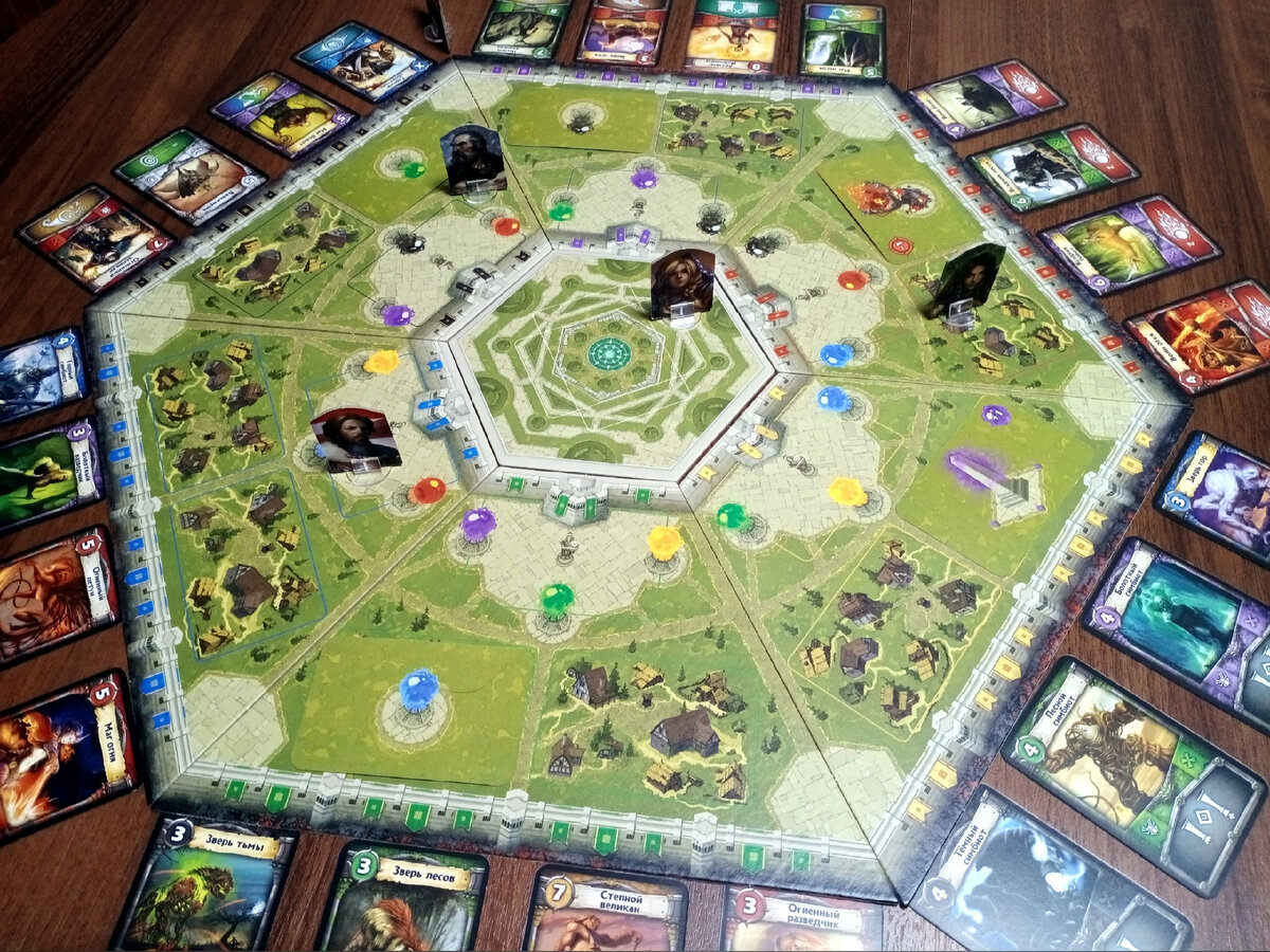Обороняющиеся же носятся по осаждаемому бастиону туда-сюда, собирая ману необходимого цвета (шесть цветов, если не ошибаюсь). Для убийства определённого врага нужно потратить ману, равную силе этого противника + сама мана должна быть того же цвета, что и оппонент. Но это ещё не всё. После убийства существа, его карта отходит на руку герою, убившего его. Переворачиваем её, тем самым превращая в заклинание. Таким образом, со временем можно будет кастовать, после чего сбросить использованное заклинание в сброс — они одноразовые.