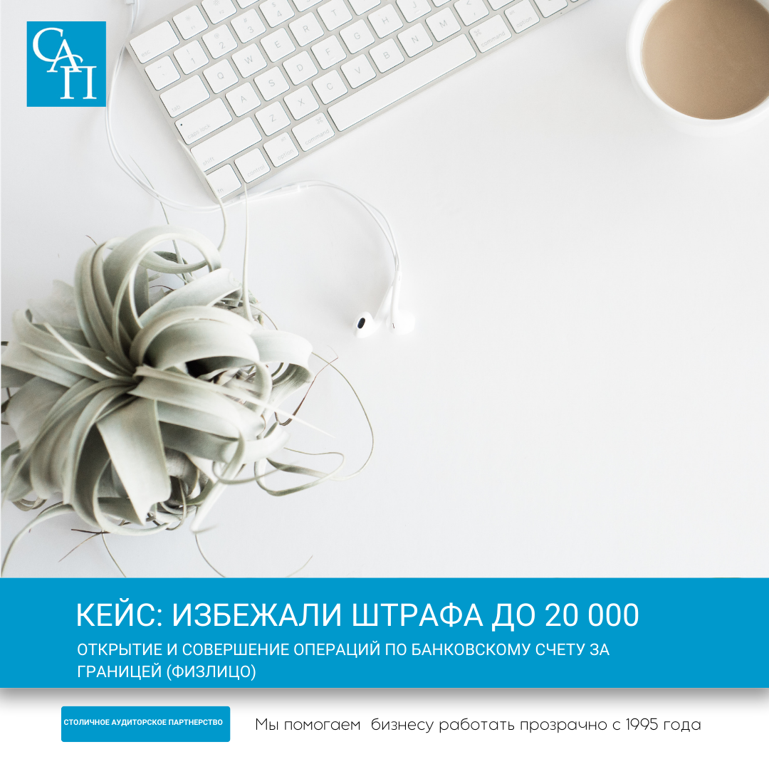 КЛИЕНТ: Физическое лицо ПРОЕКТ: Открытие и совершение операций по банковскому счету за границей РЕЗУЛЬТАТ: Избежание штрафа до 20 000 рублей ОПИСАНИЕ: Физическое лицо открыло счет за границей, совершало операции по приему и переводам безналичных денежных средств, снятию наличных денежных средств. При этом отчетность в ФНС по данному счету не предоставлялась. В результате консультации физическому лицу было разъяснены требования по предоставлению отчетности по счету, открытому за границей, предоставлен перечень операций, которые могут совершаться с использованием счета, разъяснены возможные ограничения по движению денежных средств по счету, указаны лимиты на совершение некоторых операций, возможная административная ответственность. Также были разъяснены особенности вышеуказанных требований, в зависимости от наличия или отсутствия у физического лица статуса резидента в связи с нахождением на территории РФ более или менее 183 дней. Наш специалист подготовил документы в налоговую инс