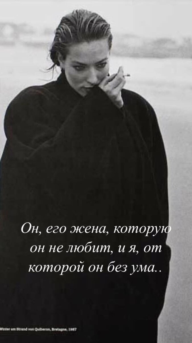 Она существует. В каждом его утре, дне и прости — ночи тоже. Она живет в его телефоне, и не всегда пишет ему гадости. Иногда, она пишет что соскучилась и просит конфеток. А он улыбается и пишет что-то такое, от чего у нас с тобой покраснели бы уши. У них есть свои вечерние ритуалы, полунамеки, шутки понятные только им. У них целая жизнь, в которой нет и не было тебя. И она для него, черт возьми, имеет ценность. Именно поэтому он врет тебе на прощанье своими грустными глазами и опрометью бежит туда. Домой. К жене.