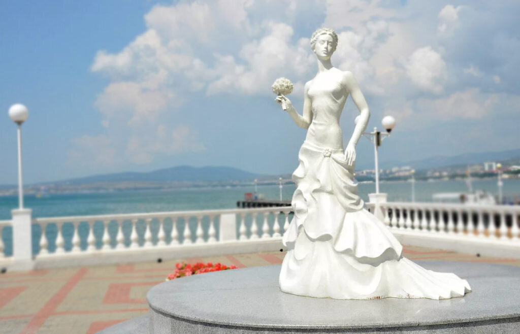 В Черноморской бухте расположен красивый курортный город Геленджик. Его называют «Город белой невесты». Климат здесь тёплый и субтропический. Туристы стремятся хорошо отдохнуть в чудесном месте. Здесь много пляжей, виноградников, курортных посёлков, живописной природы, парков, океанариумов, музеев, памятников, водопадов, дольменов и других уникальных достопримечательностей Геленджика. Огромные возможности водных развлечений, горных и морских прогулок представлены для любителей активного отдыха. Скульптура «Белая невеста» Красивый женский силуэт из бронзы установлен на набережной Геленджика. Он покрыт белилами, возвышается на гранитном подиуме. Скульптура пленит взоры изящным образом невесты, украшающей городское пространство. Памятник создали скульпторы Е. Соколов и А. Поляков художественной петербургской мастерской. Установка памятника произошла в честь открытия купального сезона в 2010 году. Невеста является символом города, т.к. в нём много солнечного света. Белый цвет символизирует