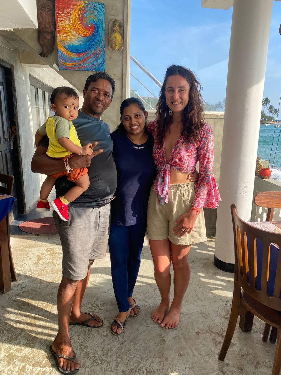 Впервые я приехала на Шри-Ланку в феврале 2013 года на 10 дней и влюбилась в эту страну. Мне было 19. Тогда мы познакомились с Нишаном, и вот уже 10 лет дружим. Сколько раз я оставалась жить у него в доме как его младшая сестра. Иногда я чувствовала, что ему одиноко и просто хотела побыть рядом. Мы все были не родными, но именно здесь в Хиккадуве с Нишаном и нашими друзьями мы обрели семью крепкую и искреннюю. В этом году я снова приехала без предупреждения, пришла в его ресторан как всегда не с кружкой чая (хоть уже давно и не пью), но теперь я также привезла подарки его сыну и жене. Наконец-то у моего любимого повара-трудоголика есть семья! Он не каждому расскажет, какой путь он прошел. Когда Нишан был ещё ребенком, то даже подумать не мог о том, что на Шри-Ланке настолько будет процветать туризм. Тогда он жил в маленькой деревушке на берегу океана и редкими гостями были сумасшедшие серферы, которые не боялись приезжать в страну, где в те времена было так неспокойно. Нишан не хотел
