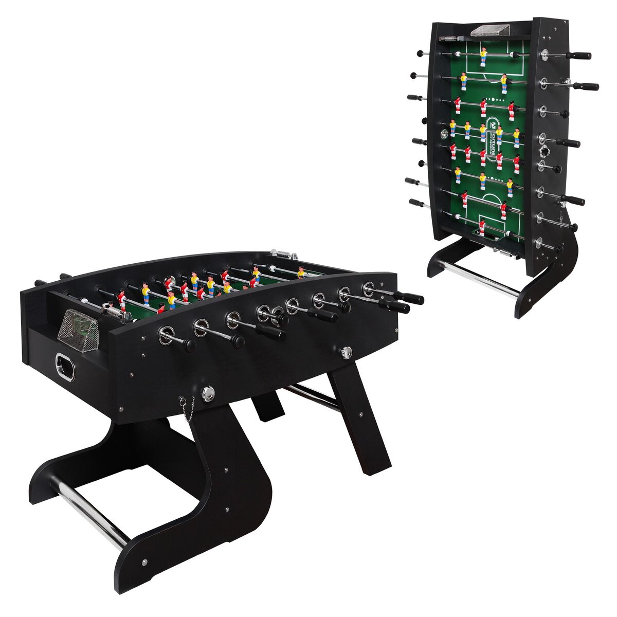Респектабельный игровой стол для футбола Escalade станет центром внимания азартных семейных и дружеских вечеринок дома, на даче, в клубах, барах и зонах отдыха. Благодаря своему дизайну и первоклассному исполнению элементов отделки стол отлично впишется в интерьер, а складная конструкция позволит использовать его в случаях дефицита свободного пространства в помещении. Монтаж игрового стола не представляет сложностей, осуществляется собственными силами, без привлечения специалистов. В комплекте со столом поставляется иллюстрированная инструкция по сборке и правилами игры, которая существенно облегчает и ускоряет монтаж. Модель упакована в прочную многослойную картонную коробку, скрепленную ремнями и с пластиковыми ручками для комфортной ручной транспортировки. Внутренние углы и стороны упаковки укреплены вставками из МДФ. Комплектующие стола дополнительно упакованы в картон, полиэтиленовую пленку, защищены от колебаний и деформации при транспортировке вставками из пенопласта и картона