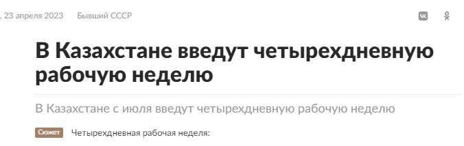 в Казахстане уже законодательно ввели четырехдневную. Соответствующий закон подписал президент страны Касым-Жомарт Токаев, вносятся изменения в Трудовой кодекс. Действовать норма начнет с 1 июля 2023 года.