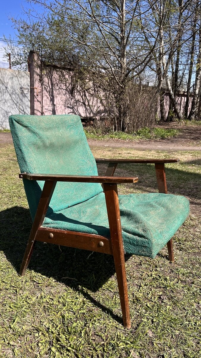 Несколько недель назад у меня спонтанно возникло желание, купить на Авито, какой-нибудь мусор и сделать из него, что нибудь дельное. В итоге у какого-то мужичка из гаража было куплено кресло. Кресло было напрочь убитым, ничего живого кроме дерева там конечно не осталось. Поролон давно превратился в пластилин, ткань тоже была на выброс и в место мебельных строп там были какие-то резинки от трусов. Так как поролон крошился кресло я ковырял на лестничной клетке (спойлер: я все убрал потом). В итоге после того, как выкинул все не подлежащее восстановлению у меня осталось только это: Я вообще-то первый раз этим занимался, и никакого опыта и мастерской у меня нет, по этому делалось все на коленке. Спасибо Ютубу, без него я не вывез бы, на любую проблему которая у меня возникала, я просто находил нужный гайд на ютубе. Вот например, чтобы снять полеэфирную смолу с ручек, нужен только утюг и фольга. Вот такой слой лака снимается с советской мебели. Чтобы отшкурить дерево перед новой покраской,